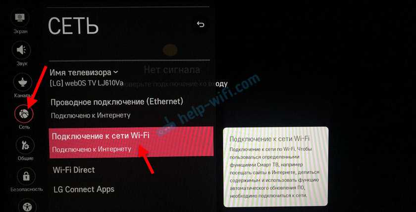 Более подробная инструкция: как подключить телевизор LG Smart TV к интернету по Wi-Fi.