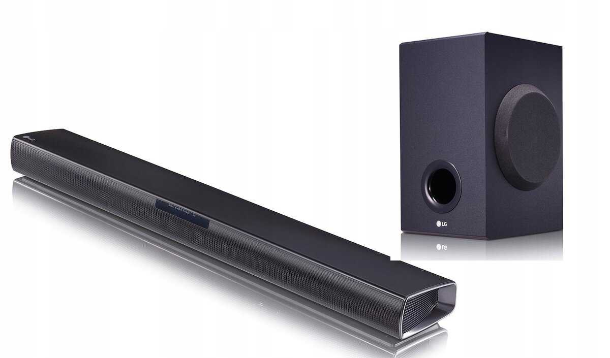 LG SJ2 – саундбар с акустическим форматом 2.1. Сабвуфер к системе подключается беспроводным способом. Общая мощность модели равна 160 Вт, из них 60 Вт выдает звуковая панель.