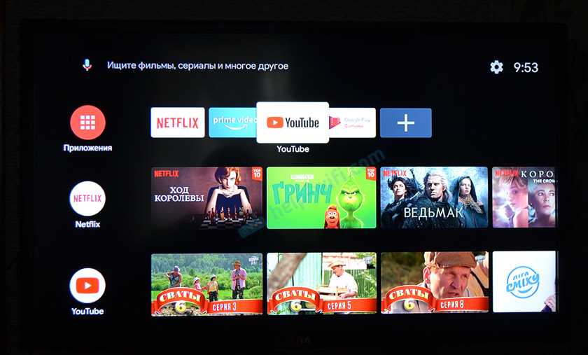 Интерфейс (главный экран) Android 9.0 на Mi TV Stic выглядит вот так: