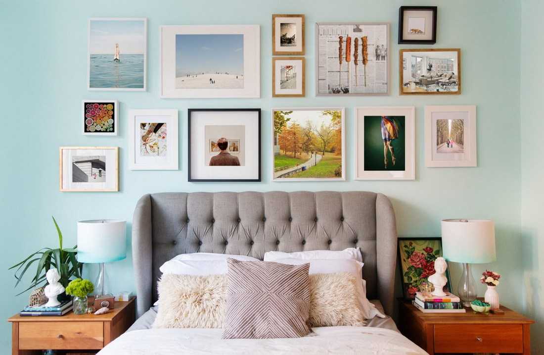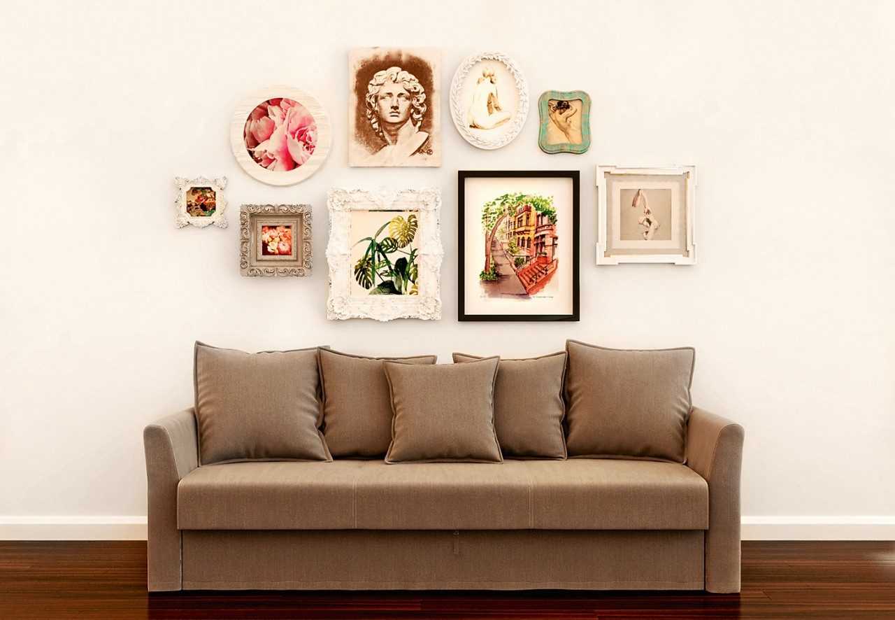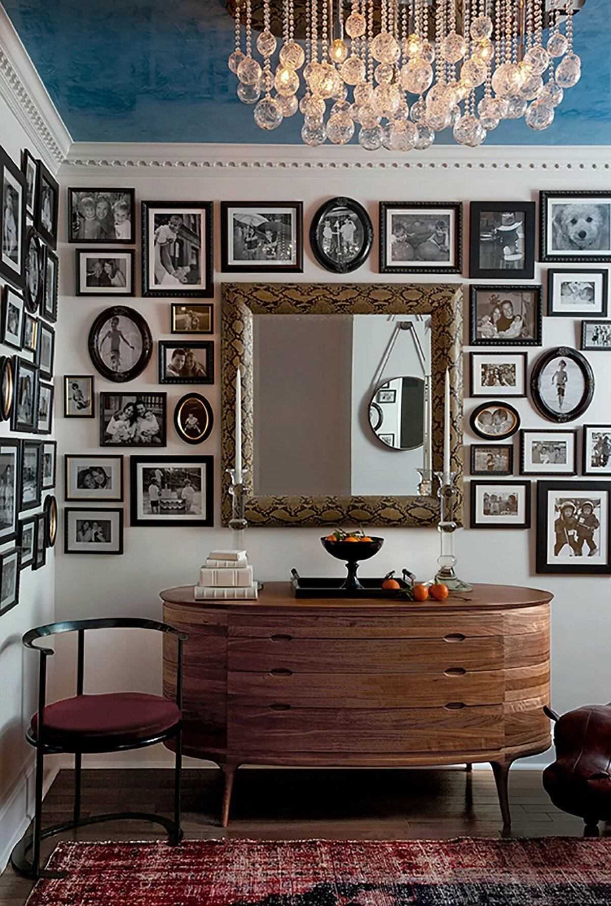 Если вы хотите собрать несколько кадров в одном месте, то можете сделать это во многих конфигурациях. Прежде всего, следует помнить, что не нужно создавать ряды с рамками, которые будут подвешены на стене в соответствии с уровнем глаз, и все они будут иметь одинаковую ширину и длину. При создании композиции с несколькими фотографиями или графикой следует использовать более приглушенные и одноцветные рамки, хотя среди них также можете разместить еще одну декоративную, например, в центральной точке.