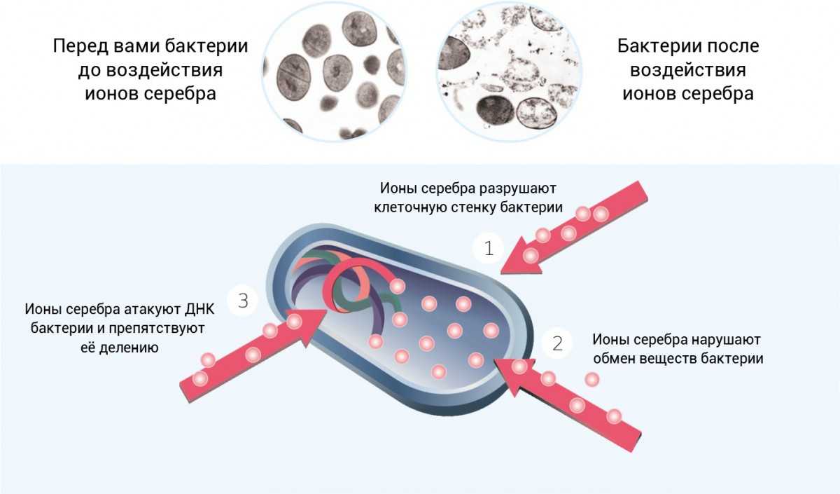 Ионы серебра, находясь в связанном виде в составе кристаллический решетки, при попадании в воду высвобождаются, и несмотря на свою микроскопичность, оказываются смертельны для большинства находящихся там микроорганизмов. На клеточном уровне серебро блокирует выработку определенного фермента, при помощи которого у простейших и бактерий происходит кислородный обмен. При достижении предельного количества ионов серебра в воде (так называемой, точки насыщения), процесс прекращается естественным образом.