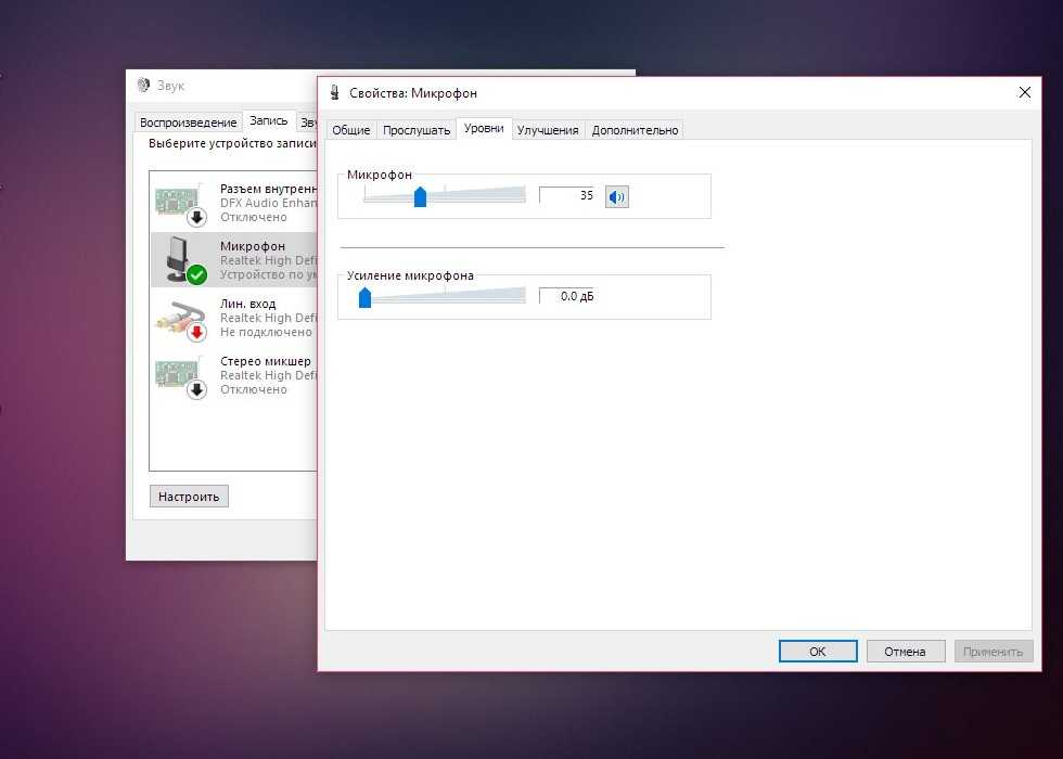 - Микрофон — это его уровень громкости, ставим его на 100 процентов