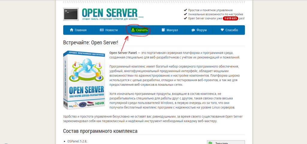 Скачивать лучше с официального сайта — http://open-server.ru/