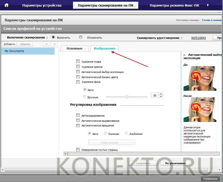 Изменение настроек сканера