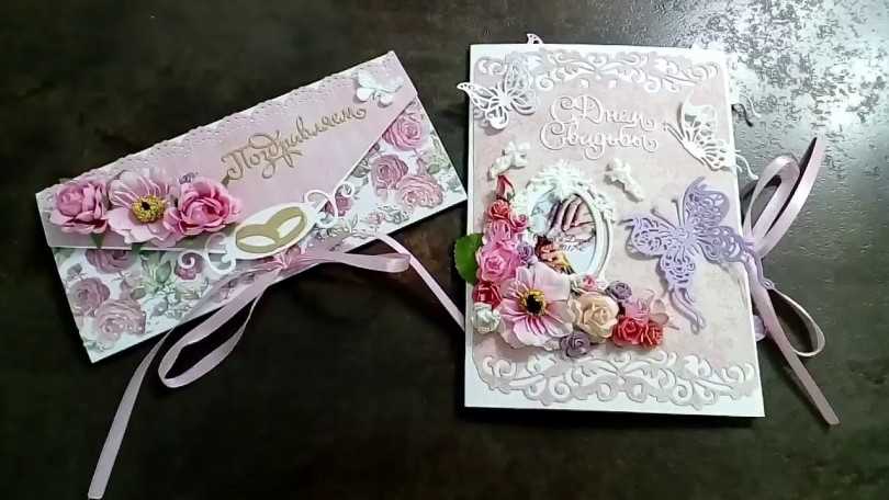 10. Начните украшать открытку — в данном примере добавили ленты и бантик.