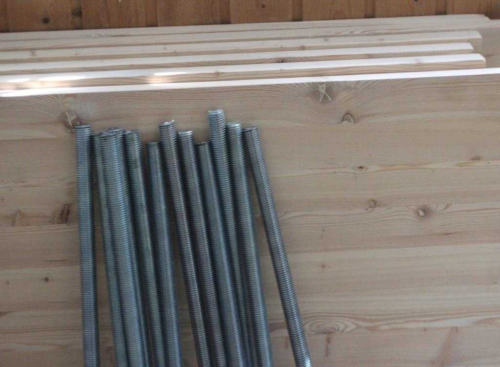 Кстати, со шпильками пришлось повозиться, ведь их продавали лишь 2метровые. Пришлось доставать свой лобзик и покупать к нему пилки по металлу, за первые 10 минут было поломано сразу 3 пилки, но потом я понял, как надо пилить шпильки и 4 пилкой по металлу я распилил все шпильки, причём очень быстро.