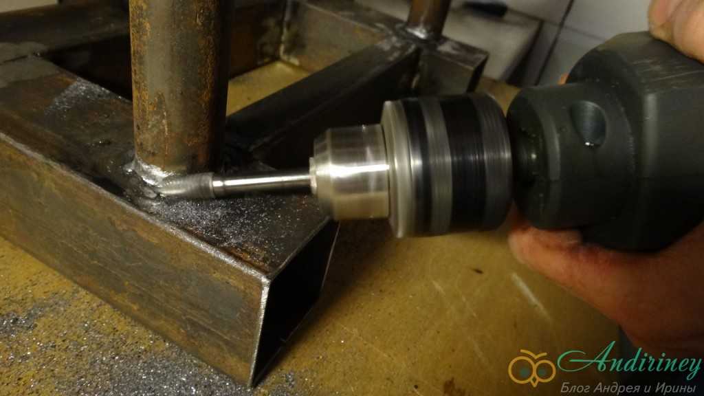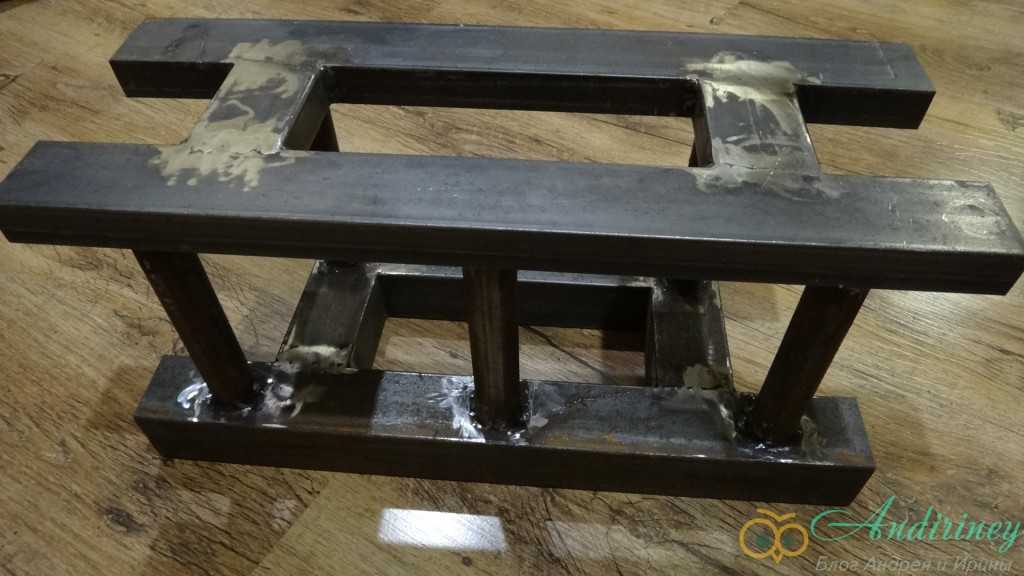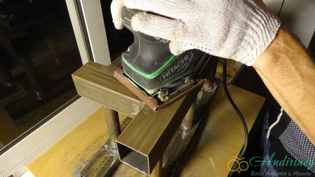 Получил свою стойку, осталось только приложить немного руки, чтобы зашлифовать сварные швы, особенно в местах соединения вертикальных круглых стоек с горизонтальными профилями, а также в углах. На фото — эти стыки «до» и «после» обработки.