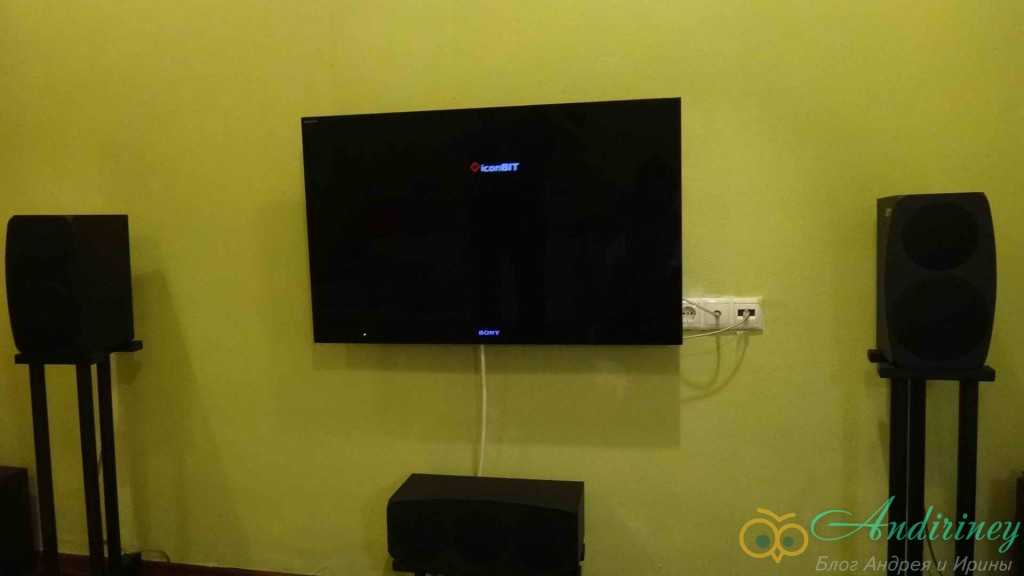 Оказалось, что единственный вариант – поставить на пол под телевизором. Дело в том, что он у меня висит на стене, никакой полки, подставки под ним нет. Городить полку под колонку? Не люблю лишний раз стену сверлить, она и так довольно хилая. Да и фазоинвертор размещен сзади, располагать его практически вплотную к стене – не комильфо, пусть даже речь о центральном канале.
