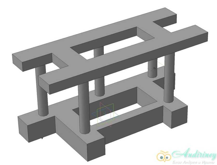Затем необходимо прикрепить к полученным полочкам и основаниям фланцы, используя саморезы. Для этого предварительно следует просверлить отверстия диаметром от 1,5 до 2 мм. Крепления фундаментальных деталей осуществляются с небольшим смещением назад (не ровно посередине). Останется вставить в ножки крепления, все зафиксировать и проверить соединения на ровность.