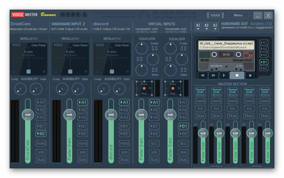 Voicemeeter улавливает абсолютно все сигналы записи и воспроизведения, позволяя не только регулировать громкость, но и выполнять различные усовершенствования, такие как шумоподавление или использование встроенного эквалайзера.