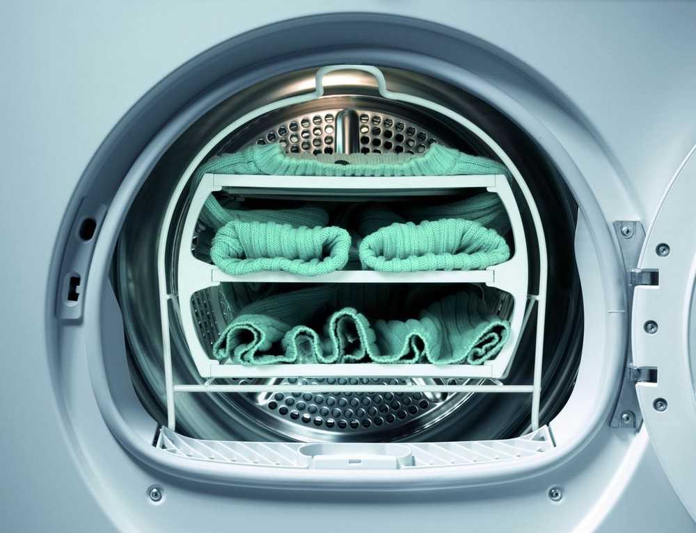 Есть два типа СМ: барабанные машины и сушильные шкафы. Последние представляют собой замкнутый блок, в котором на полках или вешалках раскладывается бельё, обдувается теплом.
