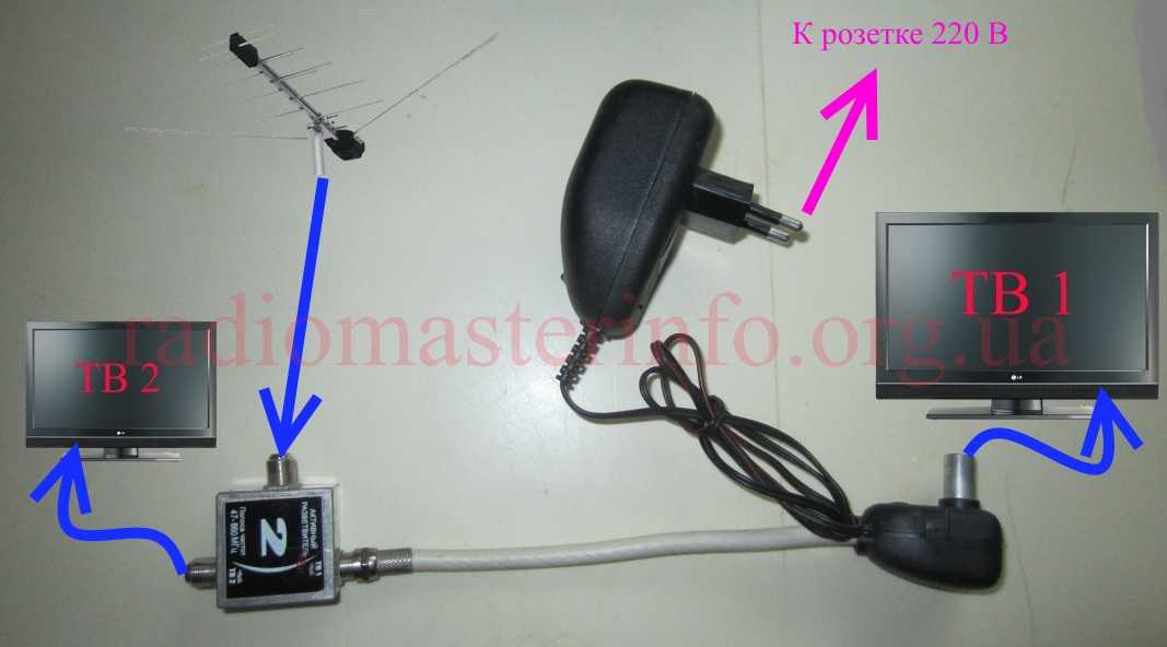 Как подключить два телевизора к одной антенне цифрового тв с усилителем.
