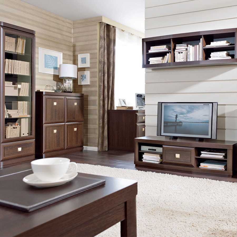Если же конструкция приобретается для гостиной, имеет смысл обратить внимание на декоративные элементы. Контрастный оттенок, резьба, необычные ручки и другие детали способны разнообразить интерьер комнаты, став его изюминкой