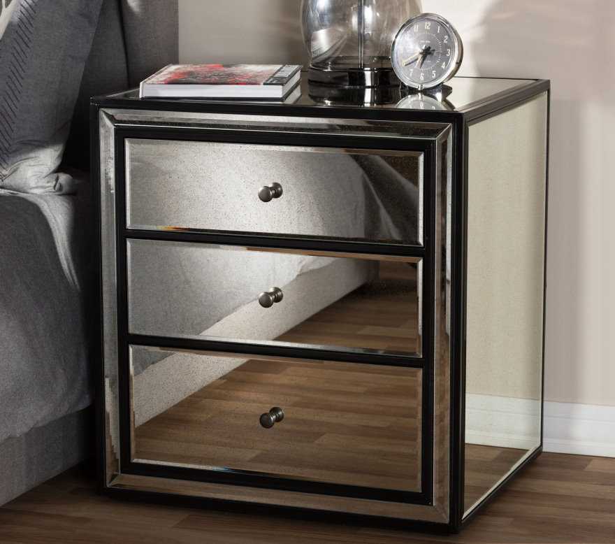 Для спальни в стиле арт-деко подходит тумбочка с зеркальными поверхностями