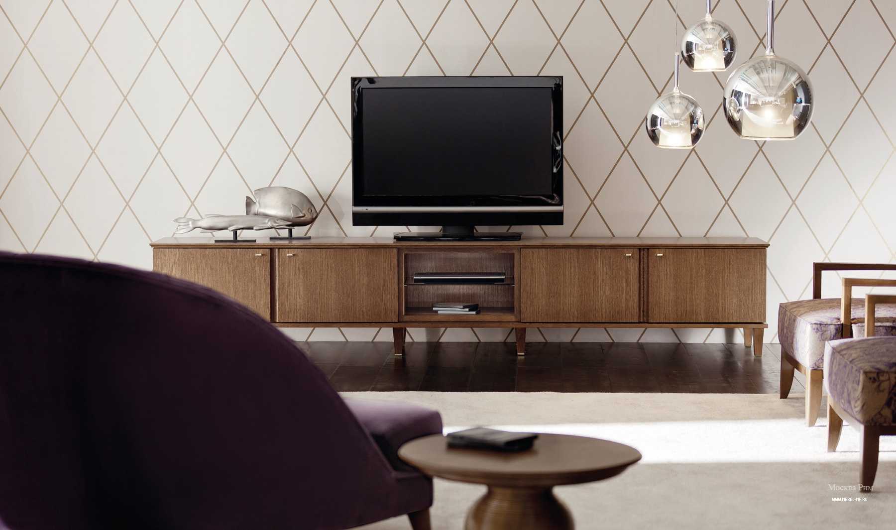 Таким образом, выбор в пользу тумб под тв из массива дерева делается обычно, если имеется небольшая по размерам гостиная. Такой предмет интерьера выпускается в многочисленных видах, отличающихся габаритами, расцветками и иными параметрами