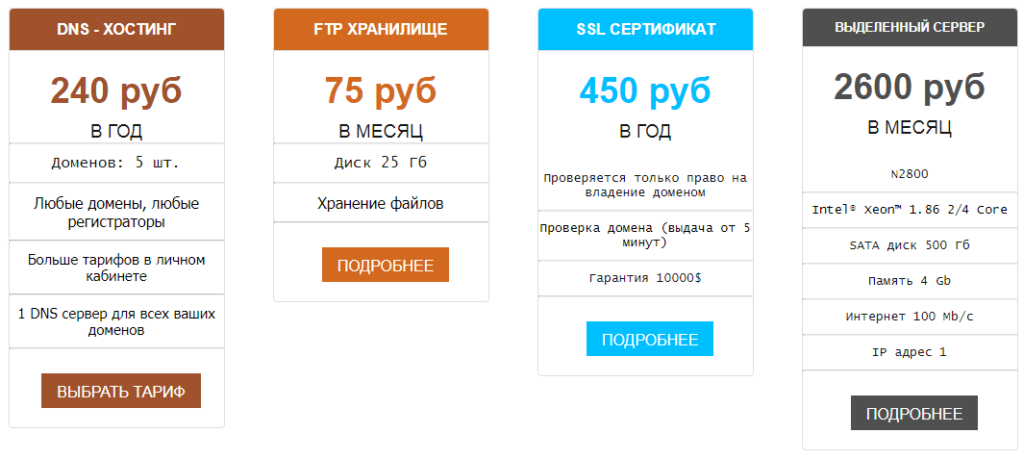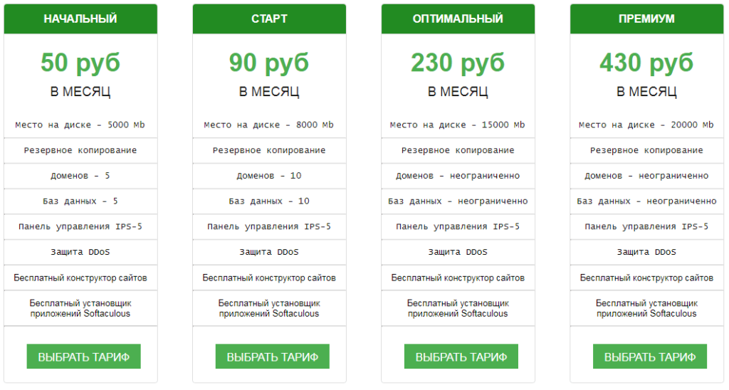А вот тарифные планы, которые Вы сможете выбрать для своих сайтов: