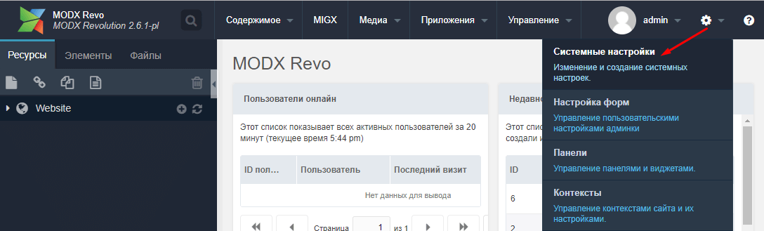 К остальным настройкам MODX мы будем возвращаться по необходимости.