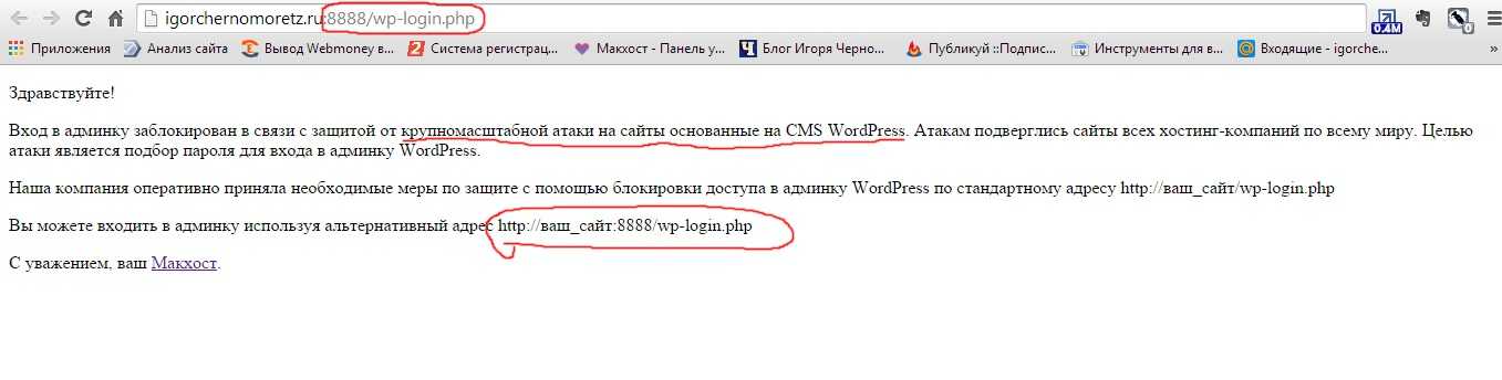 В данный момент происходит крупномасштабные атаки хакеров на сайты и поэтому хостинг Макхост предоставляет альтернативный адрес для входа в панель управления блогом.