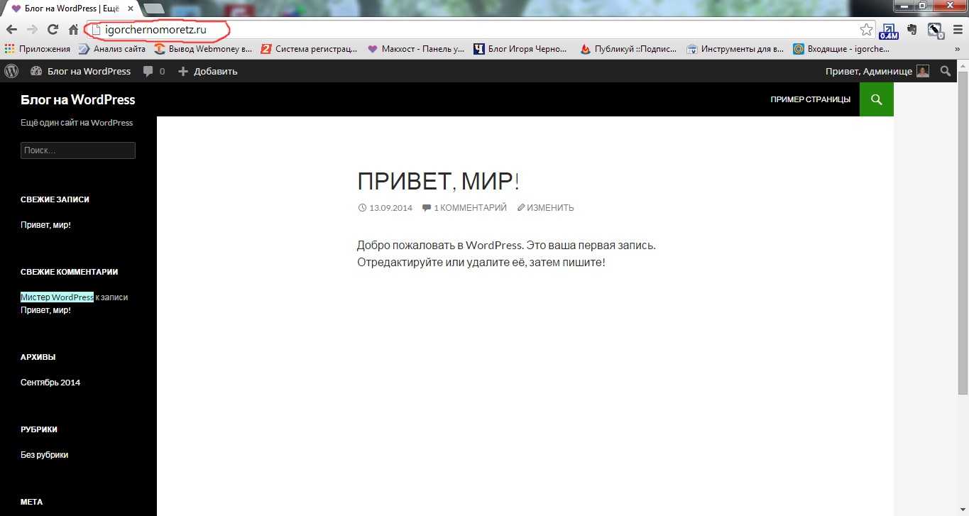 Да, он выглядит не очень, но это только самое начало. В следующих статьях я покажу вам как установить более привлекательный шаблон для блога и ещё много всего. Так что будет интересно, обещаю.