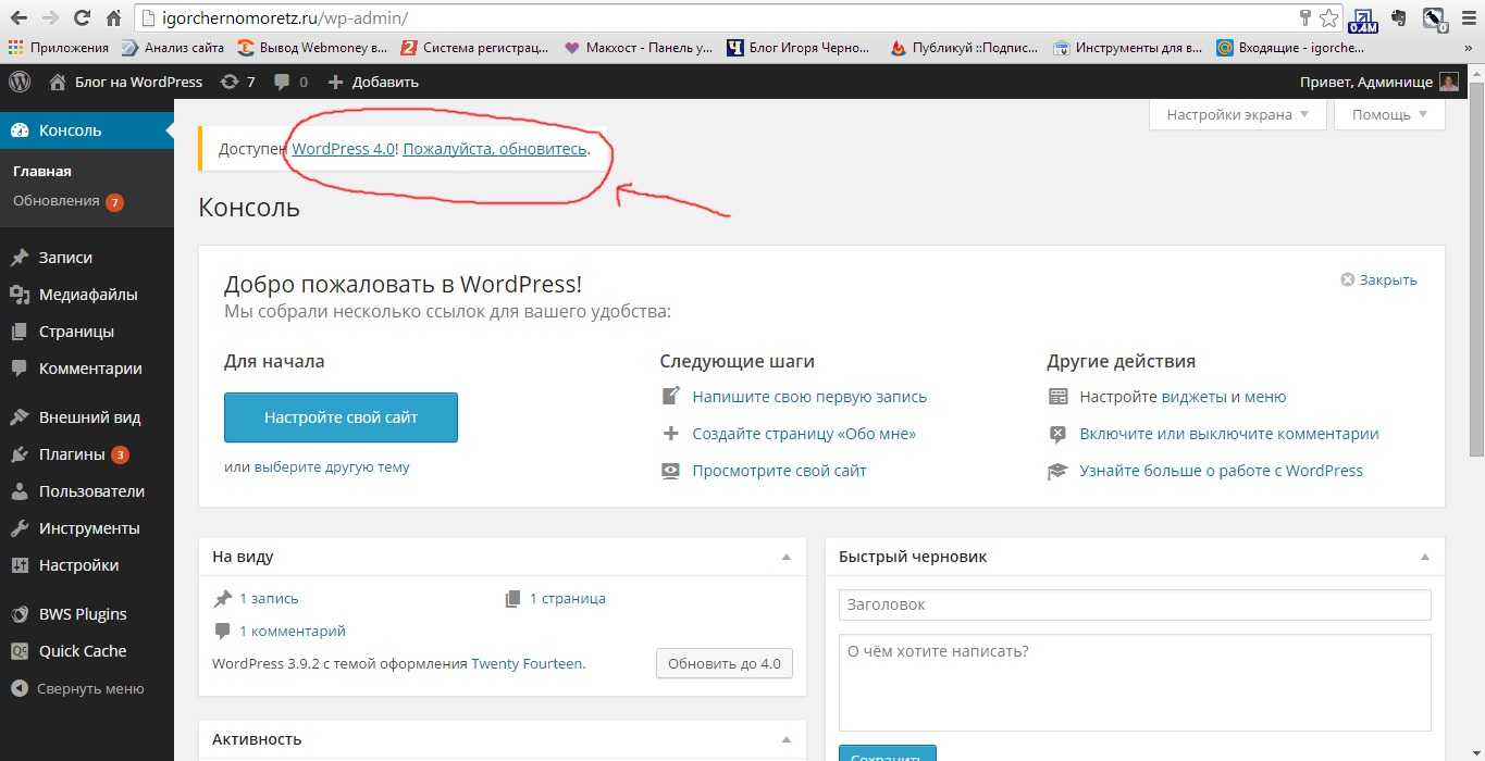 Это значит, что в админке имеются дополнительные функции, которые нужно обновить. Например, плагины и темы.