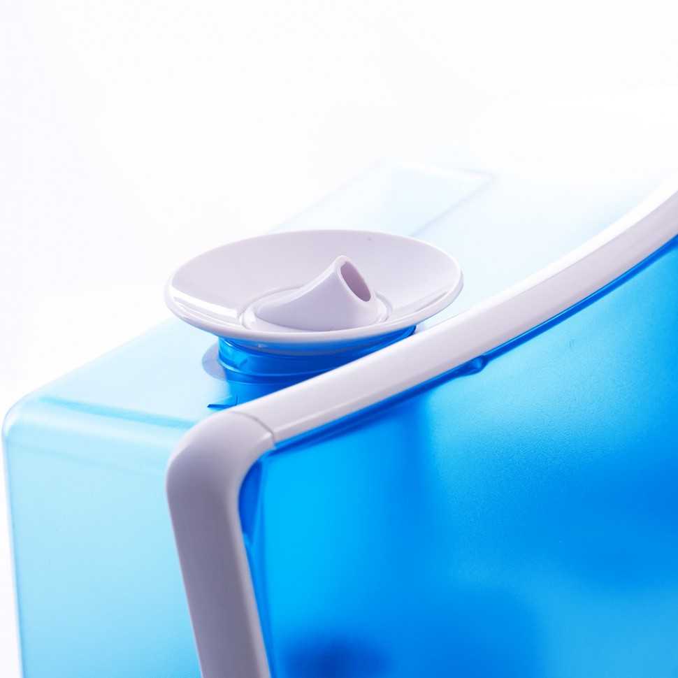 - Объем резервуара для воды. Данный параметр зависит от размеров обслуживаемого помещения и влияет на время работы прибора без дозаправки. Бака, объемом 5 л хватит для работы на протяжении ночи;