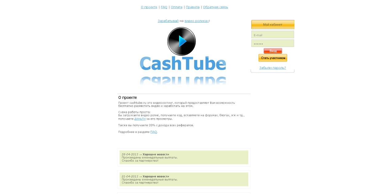 Cashtube — размещайте видео и зарабатывайте на его просмотрах