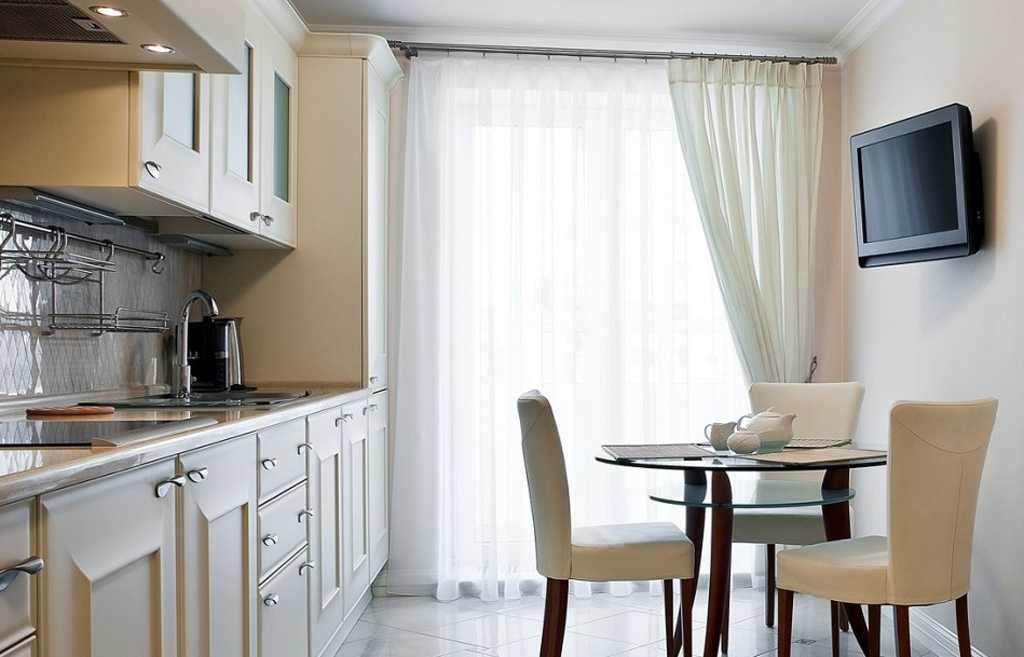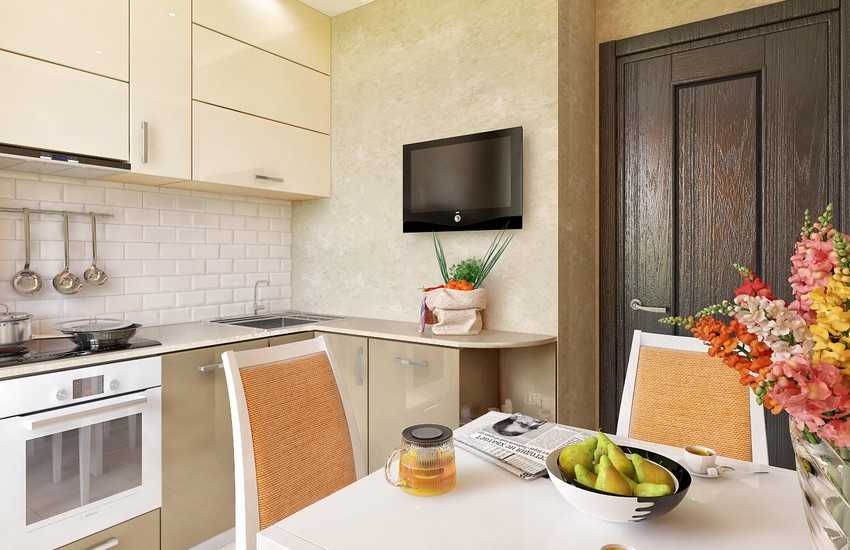 Место для телевизора выбирают подальше от варочной поверхности и мойки, чтобы избежать загрязнения брызгами и каплями жира, а также перегрева.