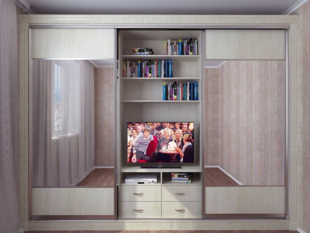 А возможность подключения к телевизору любимого интернета делает эту «вещь» не просто необходимой, а жизненно важной. Шкаф-купе с телевизором – это насущная необходимость…. Существует несколько решений конструкции такого шкафа