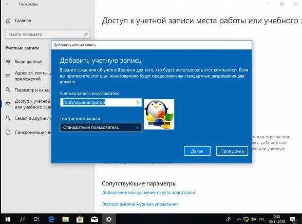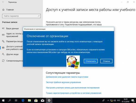 У вас откроется окно «Настройка рабочей или учебной записи». В самом низу нас будет интересовать два пункта: