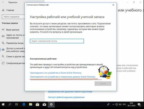 - Присоединить это устройство к локальному домену Active Directory, наш вариант
