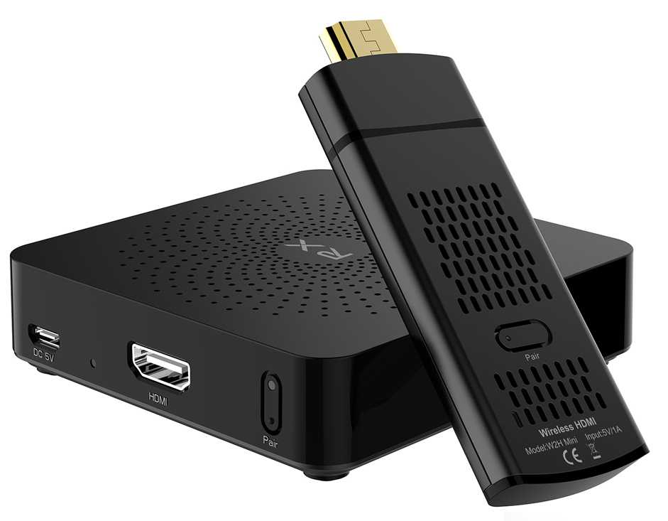 Большинство решений первого типа требуют наличия беспроводного HDMI-передатчика, подключенного к источнику сигнала, например ПК, и приемника, подсоединенного к телевизору. Эти устройства используют стандарты, упомянутые выше. Преимущества такого варианта очевидны. В отличие от беспроводных передатчиков HDMI-сигнала, работающих на частотах 2,4 ГГц или 5 ГГц, эти устройства используют менее загроможденные более высокие полосы частот. Это делает их очень надежными. Более высокие частоты позволяют транслировать несжатые сигналы.